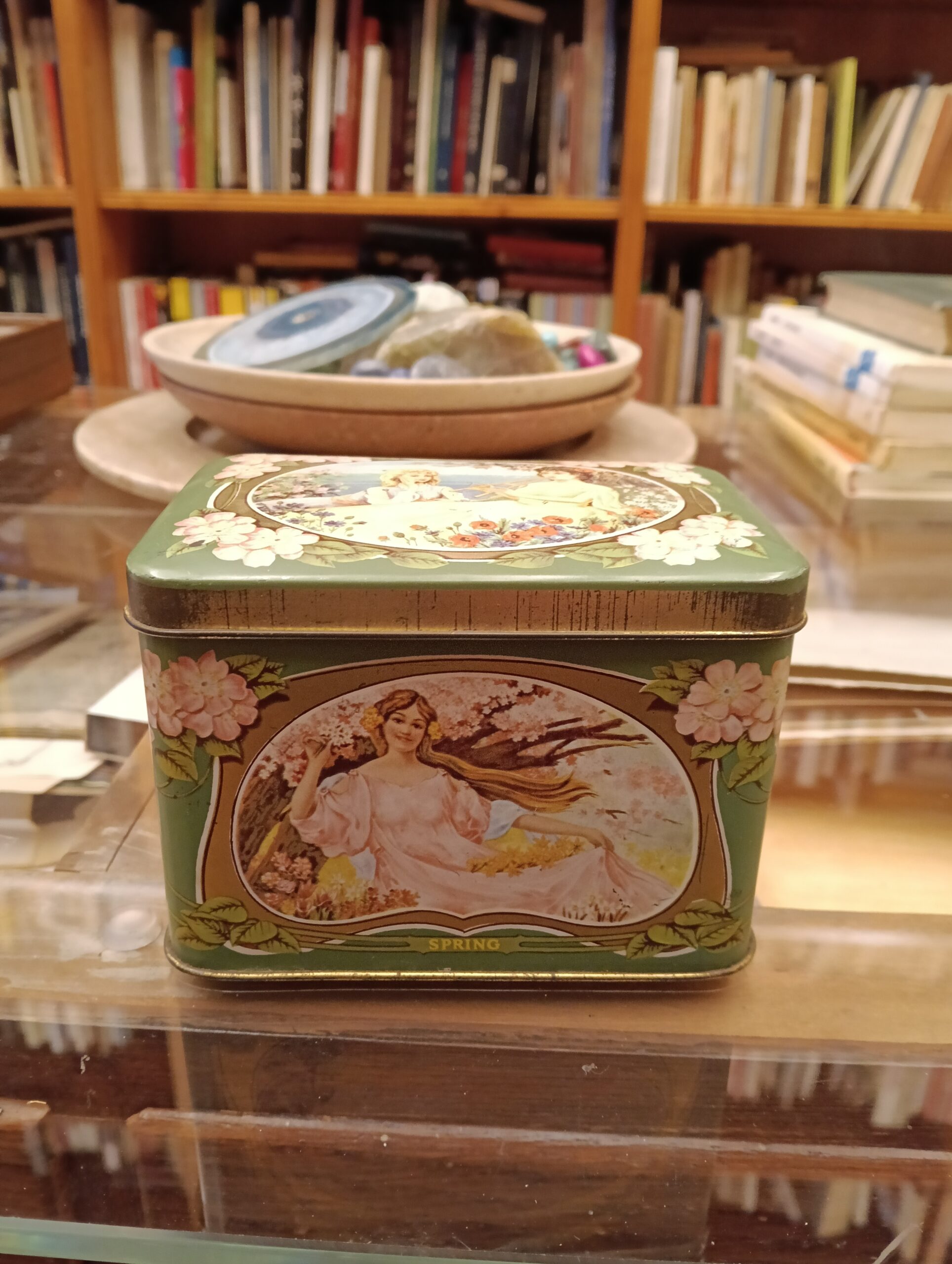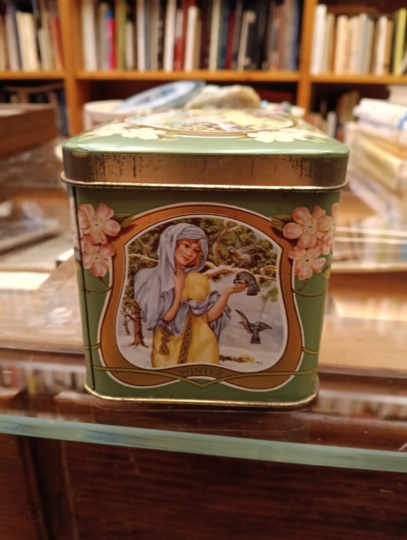 Scatolina serigrafata con le quattro stagioni.
