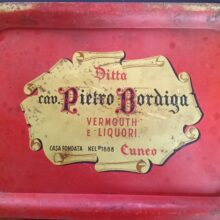 Vassoio pubblicitario in latta “Ditta cav. Pietro Bordiga vermouth e liquori” casa fondata nel 1888 Cuneo